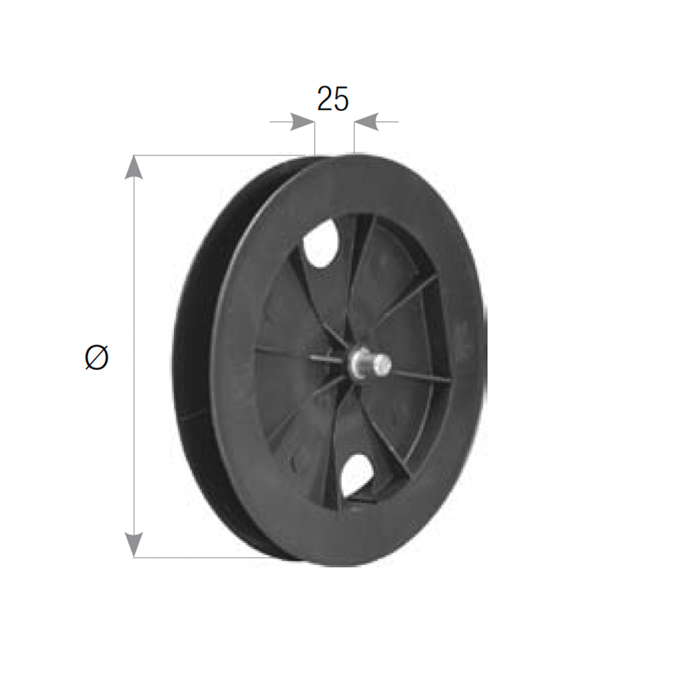 Pulegge: dischi di raccolta per cintino, accoppiabili con il rullo ottagonale da 60mm. Dotate di perno da 12mm per l’utilizzo con cuscinetti a sfera. Sostengono il perso dell’avvolgibile garantendo la funzione di rotazione attorno all’asse centrale. Disponibili in diverse dimensioni. Materiali: acciaio zincato e ABS.